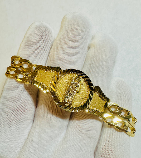 Add a touch of divine style with this 18 Karat yellow gold-plated sterling silver bracelet featuring a double strand Figaro link design. Featuring Saint Jude "San Judas Tadeo," this ID bracelet shines with faith and flair. Choose from four widths to perfectly match your vibe—whether you’re feeling bold or subtle, this piece slips on easily to brighten your day with charm and meaning.