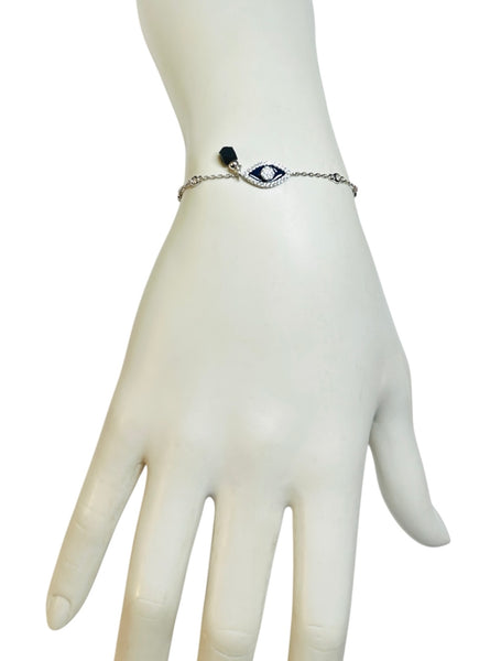 Add a splash of charm with this sterling silver bracelet featuring genuine 4mm Azabache Jet and a sparkling blue enameled evil eye accented with cubic zirconia. At 7", it fits perfectly to keep bad vibes at bay while adding a playful sparkle to your wrist. A fun, protective piece you'll love showing off every day!