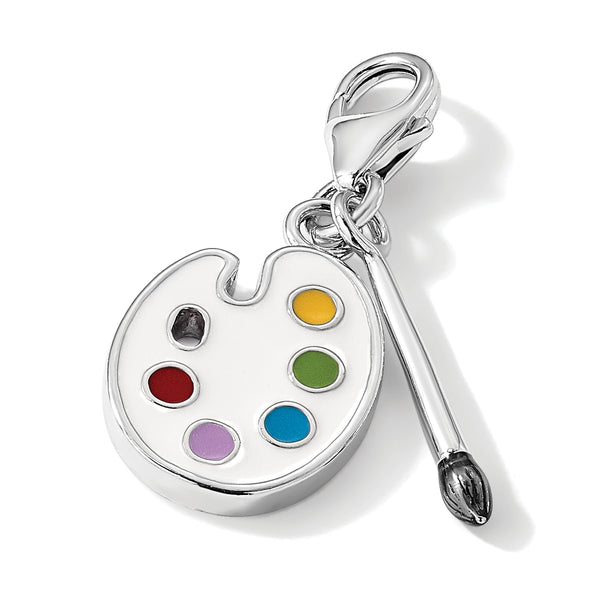 Sterling Silver Enameled 3-D Palette And Brush W/Lobster Claw Clasp Clasp Charm Charms