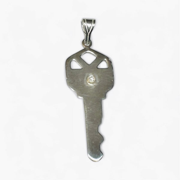 Unlock a touch of sparkle with this charming house key pendant crafted from sterling silver and 14 karat yellow gold. Featuring a genuine diamond, it’s more than just a key—it’s your new favorite treasure that adds a playful glimmer to any necklace. Perfect for keeping your style—and maybe your secrets—a little bit locked up!