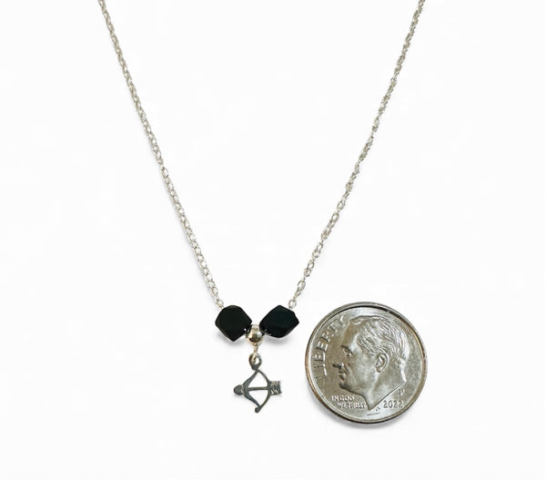 Sterling Silver Genuine 4mm Azabache Jet with Small Ochosi Bow & Arrow Charm 18" Cable Link Chain