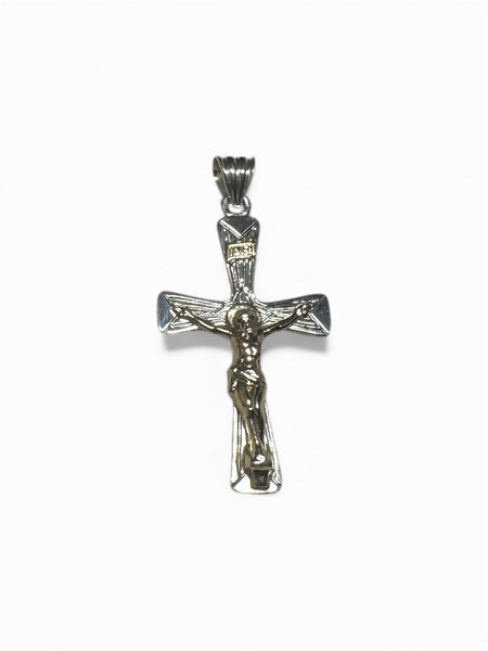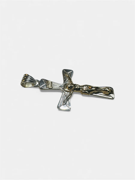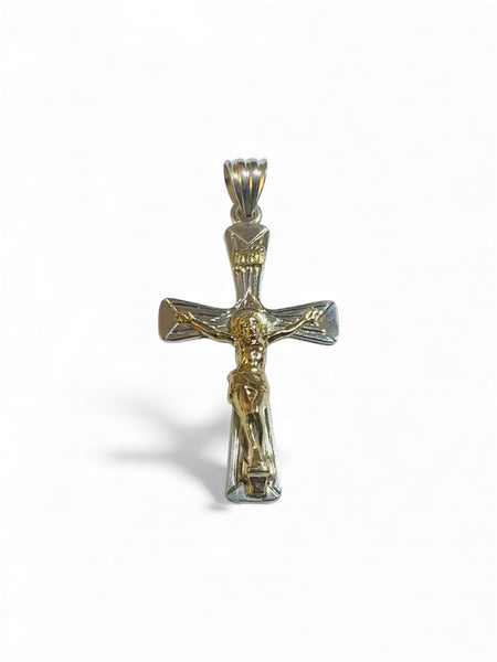 This stunning crucifix pendant blends timeless spirituality with luxe materials—sterling silver meets 14 karat yellow gold in a harmonious two-inch design. The INRI inscription adds authentic religious significance, while the mixed-metal approach gives it modern flair. Perfect for layering, gifting, or making a meaningful statement. Whether you're a devoted collector or seeking something with soul, this pendant delivers both elegance and purpose with a touch of golden charm.