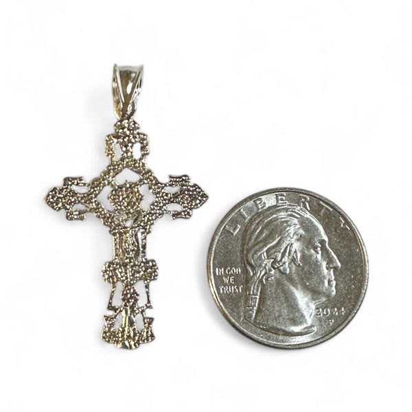 Embrace the divine with our Sterling Silver Filigree Crucifix Pendant. Crafted from precious sterling silver, this pendant boasts intricate filigree details and dazzling embellishments. Bring a touch of luxury to your wardrobe and elevate any outfit with this exclusive piece.