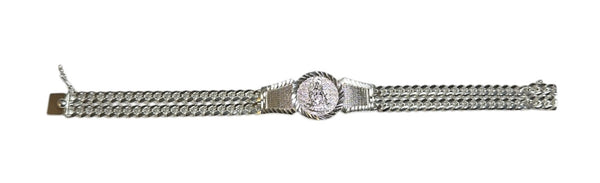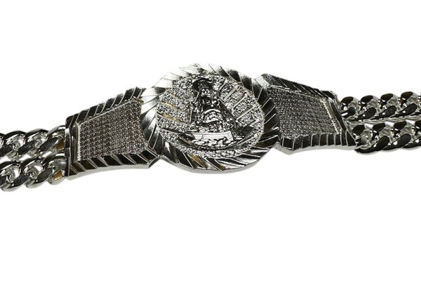Wear your faith with flair! This stunning sterling silver Miami Cuban link bracelet combines bold, chunky style with spiritual significance. Featuring an Our Lady of Charity "Caridad del Cobre" in the center of the ID plaque, it's the perfect blend of devotion and fashion-forward design. The 6mm links create that eye-catching presence while the 8.5-inch length fits comfortably as an ID bracelet. Crafted in solid sterling silver, it's built to last through daily wear and special occasions alike. A meaningful piece that celebrates your heritage and personal style.